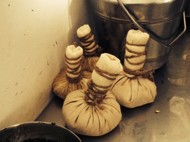 研修前半5日間は、午後に伝統的なアーユルヴェーダトリ−トメントの実技クラスをおこないました。 ball elakizhi